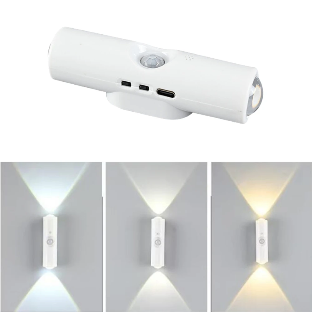 LED Night Light with Motion Sensor RGB CCT USB Rechargeable Magnetic Double-head Sunset Lamp Stair Cabinet Hallway Room Decor