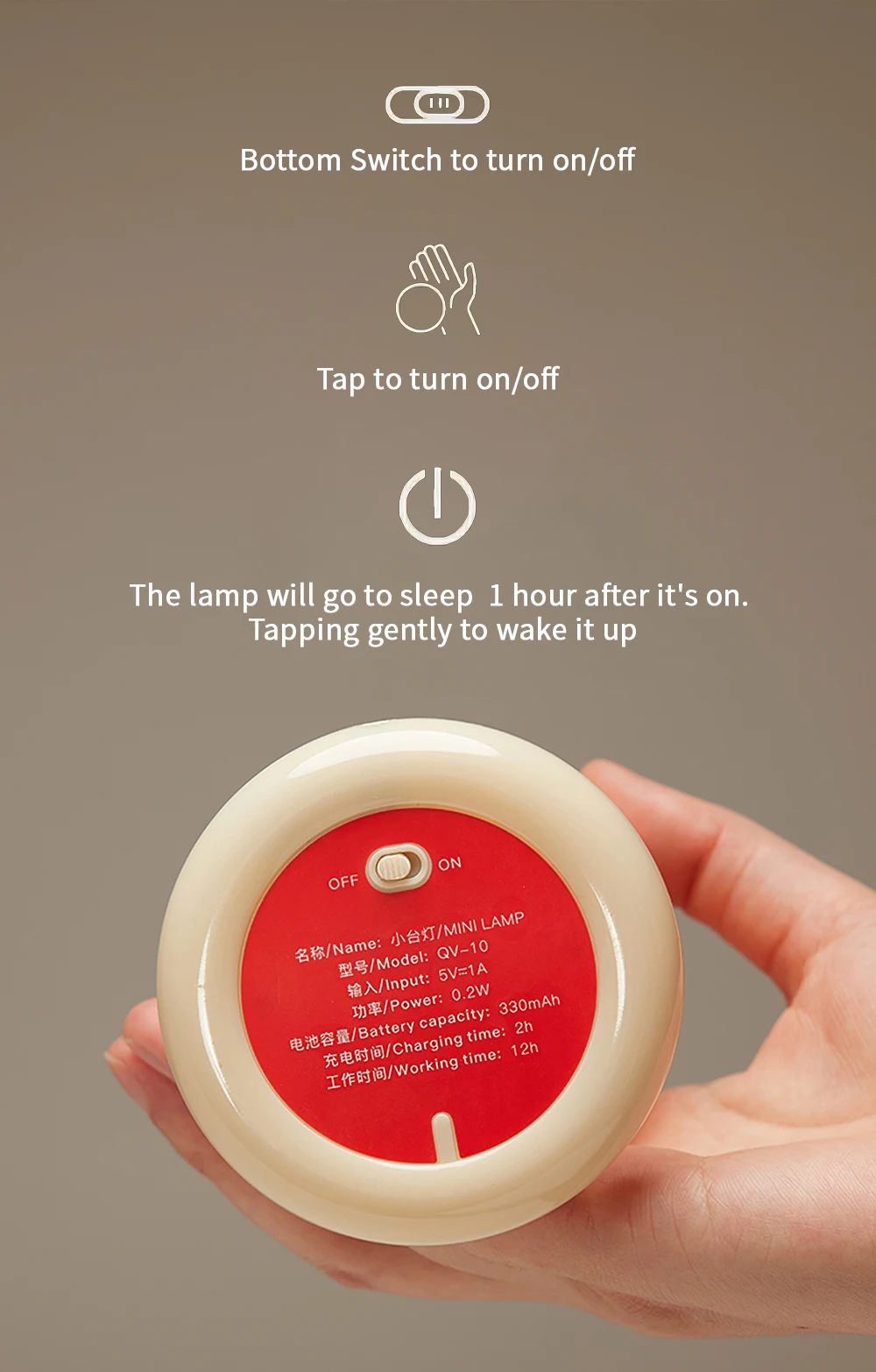3: Intelligent control: users only need to tap the light to wake up and turn on, which is very convenient, and it also has a one-hour timer to turn off the light, reducing unnecessary energy waste.